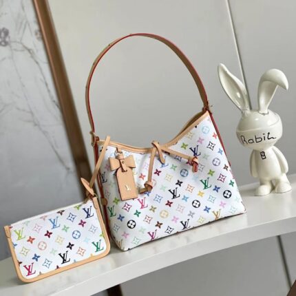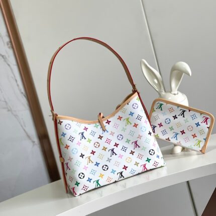 The Venice shoulder bag is crafted from coated canvas and features a Monogram pattern in the vibrant hues of Japanese artist Takashi Murakami's brushstrokes, underscoring the spirit of the Louis Vuitton x Takashi Murakami reissue collection. Classic cowhide leather shapes the slim shoulder strap, while a large snap closure lends a metallic sheen to the flap and exterior pockets. Dimensions: 24.0 x 26.0 x 7.0 cm (L x H x W)