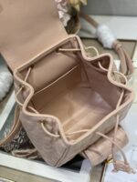 This Dior Caro backpack is a new product from the 2025 Spring/Summer Ready-to-Wear collection, showing off its stylish and elegant style. Crafted from pink lambskin and other materials, it is enhanced with oversized rattan check stitching. The flap is decorated with a vintage gold-finished metal CD logo. When opened, it is the main drawstring compartment, and the small flap pocket can store various daily necessities. The small style is paired with gold-finished handles and adjustable shoulder straps for added comfort.