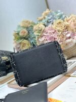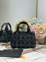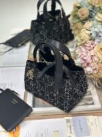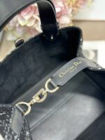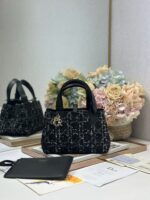 This Dior Toujours handbag made its debut at the 2024 Spring/Summer Collection Show, with a unique casual and practical design. It is carefully crafted with black cowhide leather and black canvas with coarse patterns. The spacious internal compartments are matched with small bags to neatly store various daily necessities. There is also a CD Lock letter D knob-style closure, which can be adjusted on both sides to enhance the style. The leather handle has adjustable details and can be easily carried. CD Lock and tie closure DIOR pendant Removable internal small bag Adjustable leather handle Dust bag included.
